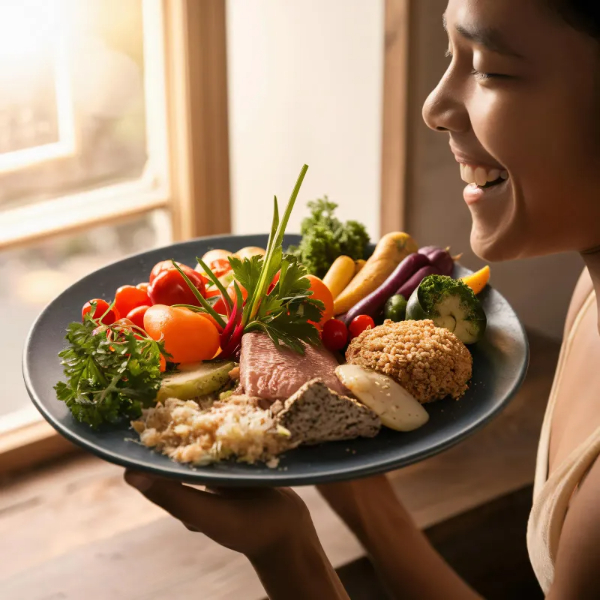 - 복합탄수화물: 현미, 잡곡, 채소처럼 천천히 흡수되어 혈당을 완만하게 올리는 식품